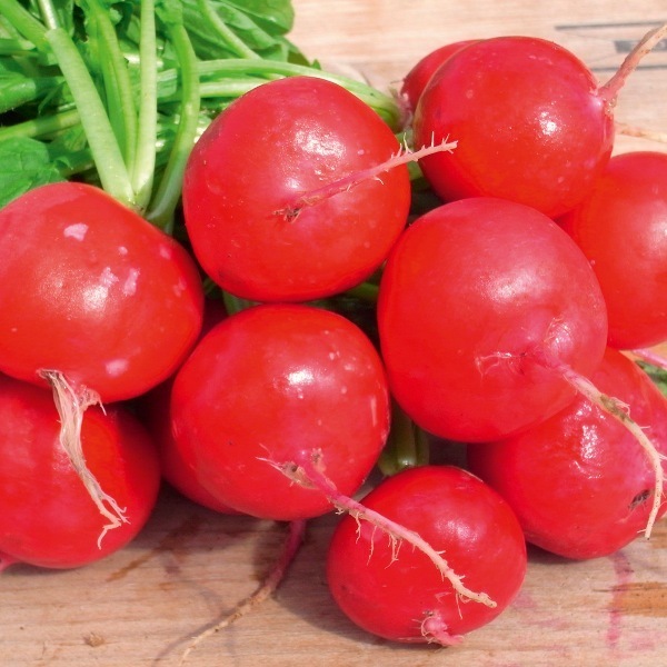 Le radis RUDI est une jolie variété homogène facile à botteler. Rouge lumineux. Feuillage compacte, attache solide.